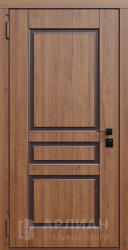 Стальная наружная часть часто покрыта порошковым покрытием, и тогда снаружи дверь порошковая, а изнутри она облицована панелями из МДФ. В других случаях дверь МДФ с двух сторон: наружная и внутренняя стороны полотна закрыты панелями. Для квартиры это чаще светлая дверь в подъезд, а для дома выбирают стальные двери с МДФ с уличным покрытием, где используется пленку Винорит или износостойкую эмаль, рассчитанную на осадки и солнце.