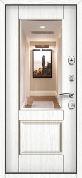 Входная дверь White с зеркалом и отделкой под дерево №13