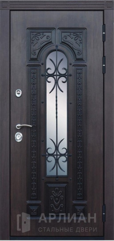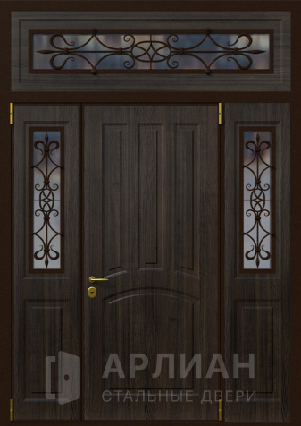 Входная дверь для загородного дома с коваными элементами №115