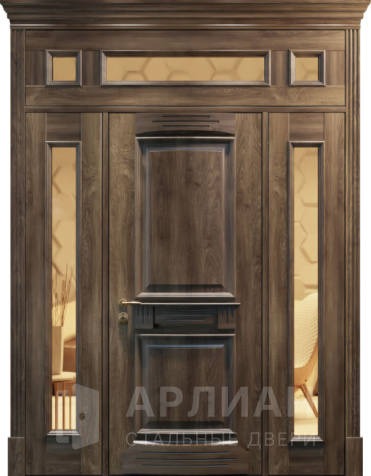 Теплая металлическая дверь с фрамугой входная №435