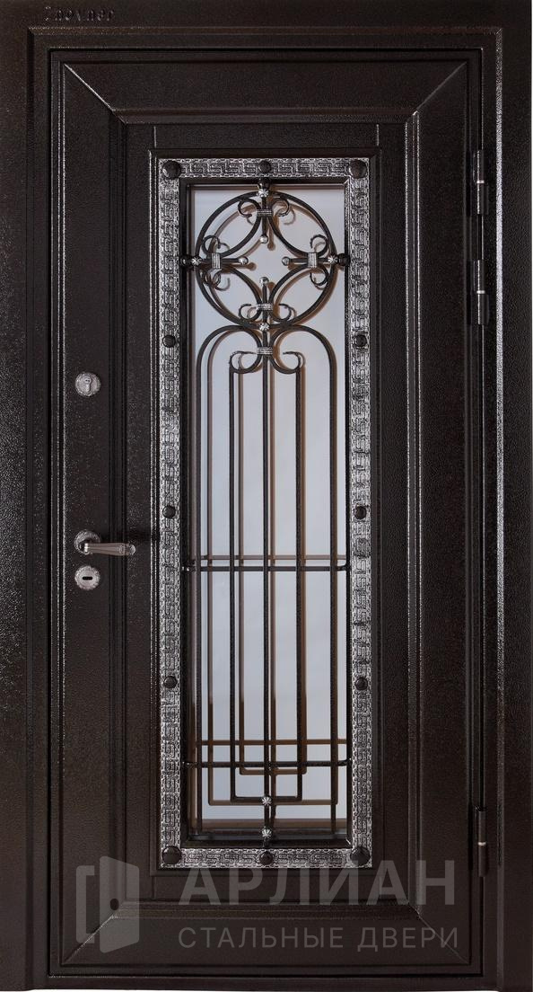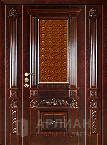 Металлическая входная дверь в коттедж с верхней фрамугой №10