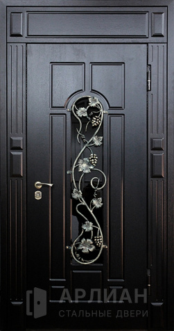 Двухстворчатая входная дверь со стеклом и ковкой №9